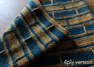 4ply weight - RiverKnits Nene 4ply; 100g/ 400m/ 437yds; 100% British Bluefaced Leicester. Sample used 100g each of shades Kiefernwald and Bienenwabe.