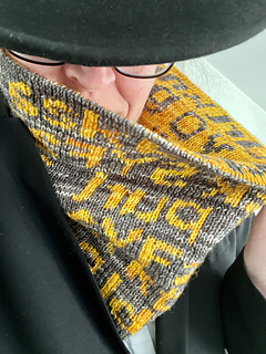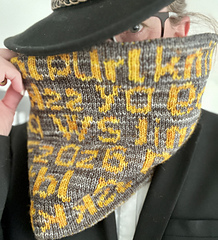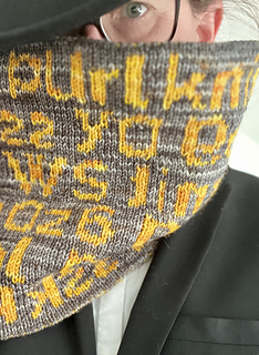 The Cipher Cowl is a playful, mysterious design inspired by hidden messages and classic English knitting abbreviations like ssk, k2tog, RS or WS. What looks like a secret code reveals itself stitch by stitch.