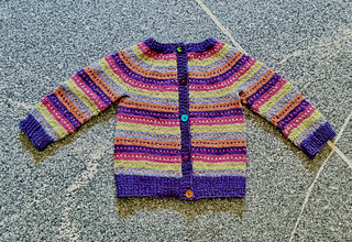 The Pick’n’mix is a baby and toddler cardigan that’s knitted top down. At the underarms stitches are placed on holders for the sleeves, then the body is continued in one piece. The sleeves are then worked top down too and are seamless.