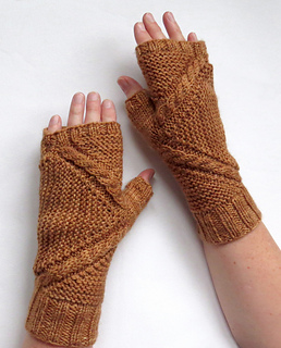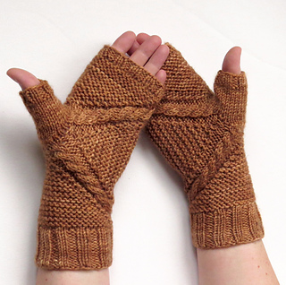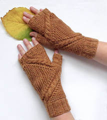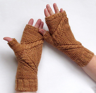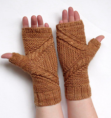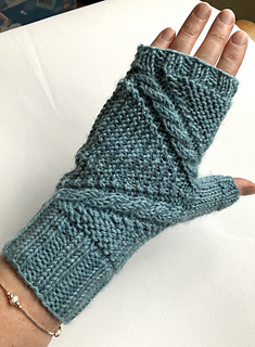 Thumbs Up are fingerless mittens that are knit starting from the thumb. The hand, in squishy garter stitch combined with diagonal cables, is worked around the thumb, forming a square. When it reaches the desired width, the square is folded and its two sides are joined on the bind off row.