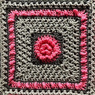 The Thursday Square features 3-D flowery center by crocheting around twice, first using the front loops, then the back loops. This is the most challenging and textured of all the 7 Day Sampler motifs.