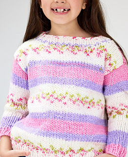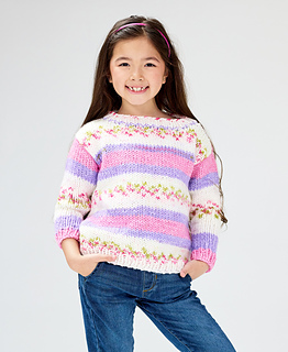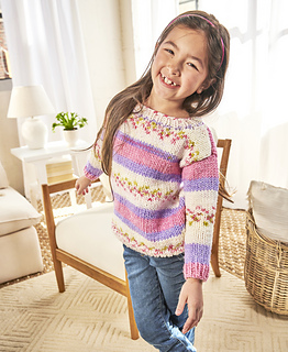 Back and Front pieces are knit separately from the bottom up. After sewing shoulders, Sleeves are worked off the assembled body from the top down. The Neck edging is worked in the round on double pointed needles or circular needle.