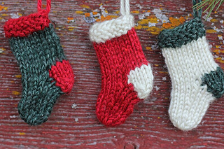 I like to knit these tightly using worsted yarn and small needles; this helps the stockings keep their shape. However, gauge is not critical for this pattern, and you’re welcome to experiment to see what gauge you prefer.