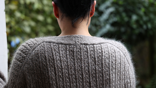 The TiticHaya Sweater is knitted seamlessly from the top down. First, the top of the back is worked back and forth with increases to shape the shoulders. Then, the back section of the yoke is knitted down from the back neck edge, worked back and forth in pattern, until the armhole is complete.
