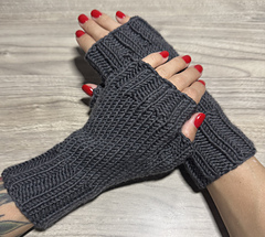 Knit from 100 yards of any Aran-weight yarn, these quick-to-knit fingerless mitts are surprisingly warm. The finished mitts measure approximately 6.5 inches in diameter above the thumb and approximately 7.75 inches in length. They will fit an average size woman’s hand.