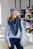 Das Tuch Cali XL ist ein herrlich weiches Tuch mit einem Karomuster, das von der einen zur anderen Tuchspitze gestrickt wird. Beginnend an der rechten Seite werden Zunahmen bis zur Tuchmitte gestrickt, um danach durch Abnahmen die linke Tuchspitze zu formen. Für das Karomuster werden Streifen in einer Kontrastfarbe gearbeitet. Durch das Stricken linker Maschen in entsprechenden Abständen wird das spätere Aufhäkeln der Maschen für die Querstreifen des Karomusters vorbereitet.