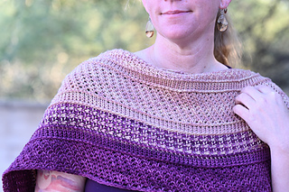 This shawl uses all the stitches and techniques from the prior shawls and introduces stitch patterns (honeycomb and lace).