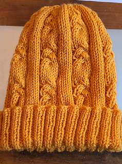 This cozy hat has a lovely old-fashioned cable winding lazily up it, reminiscent of long, slow glides across the ice, followed by hilarious twirls that often went awry!
