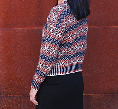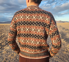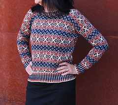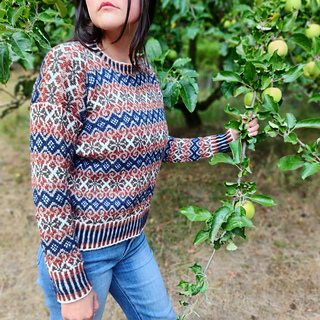 Twoolen uses two strands of wool yarn at a time to create a sweater with Fair Isle style. Knit in the round, this drop shoulder sweater uses steeks to form the armholes and shape the neck. Worked bottom-up, the sweater starts with a generous colorwork ribbing that matches the cuffs of the sleeves. Follow the colorwork charts and a beautiful pattern with 6 colors will be revealed. Finish off with a smaller colorwork ribbing for the neck.