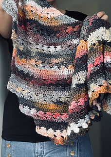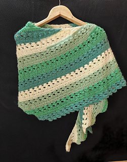 Worked flat from tip to edge, this shawl grows into an asymmetric dragon-tail shape. Increases along one side add width, while short rows form the stepped, jagged silhouette.