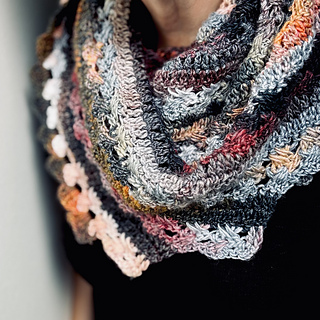 1 skein of Tea Time = scarf size. Add skeins for a larger shawl.