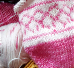 • Fil recommandé : Squirrel’s Yarn – base Amande (ex : coloris Éclat de rose & Lait framboise)