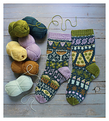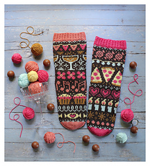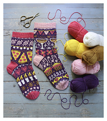 The 11-pages long PDF-pattern includes good charts, written instructions and photos for these delicious mismatched socks.