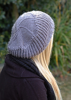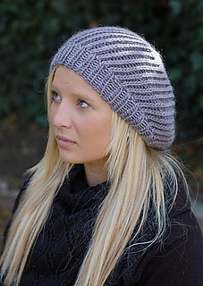 A modern, slouchy beret with a bias body and generous shape. Pattern is worked bottom up and in the round.