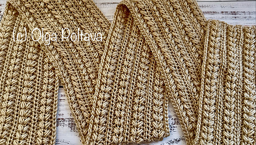 The scarf is crocheted along the length, not the width. But if you’d like to crochet the scarf along the width, you can easily adjust the pattern for that.