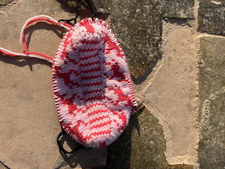 20 masker • 28 pinde i tofarvet dobbeltstrik som i diagram på pind 4 mm = 10 • 10 cm