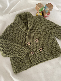 Winston is a classic, shawl collar, double-breasted, raglan cardigan with a shawl collar. It features an all-over textured pattern on a garter stitch base.