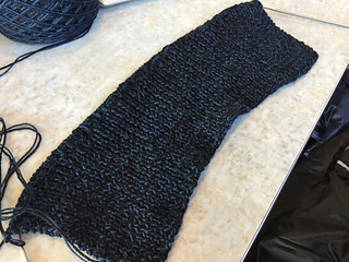 I stopped knitting so damn tightly! Trying to get this yarn, held two strands together, to end up at 5.5 sts = 1” was reeking havoc on my hands. I relaxed into the pattern on my second attempt and ended up with a looser, drapier, much nicer fabric. But I didn’t stop and check my gauge as I knit. So… what do I have now? Another back that is a giant gauge swatch for me to reevaluate!