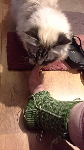Almost reached the point where I frogged today. I an knitting very loosely, to make sure the sock will fit me - and without too much effort. The coming days I will have little knitting time, so hopefully I get through the heel befor Round 2 of the Sock Madness starts