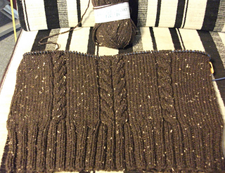 Progress, so after sat and sun, ripping back the pattern not once but twice, I was not happy with my results on the arm shaping nor was I happy with the way the sleeve turned out, I ripped out the both sleeves and ripped all three sides out to the beggining of the separation for the sleeves on the body, reknit them cause they were to short, tried them on on sunday, and they were too long,lol.. was pulling my hair out, So, finally I reknit it the way I wanted it, did not stay to pattern, I adjusted the arm opening to 8.5 and adjusted for gauge on needle,