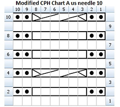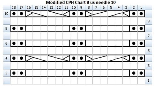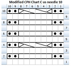 Due to the difference in length vs the original cph, the cable is done every 6 rows in the front verses the original pattern which is 10 every row.