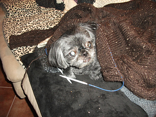 6/25 hood has been unraveled, finally ready to start the cardigan version of CPH. Dog stole my sweater just have to get it back from her to do the zipper band and the collar. See picture above, the dog is missy she is a blind Schi tzu. Love her to death, but when I am knitting she thinks they are hers. Just cause she is blind does not mean she can not steal.. LOL»> got to find some laughter in my frustration of this sweater.<<<<<<< zipper, was very pleased with results, This is now my FAVORITE….:) alot of hard work that paid off.
