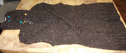 When I am finished, I will do an I cord bind off on the button band and add a custom size zipper.