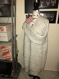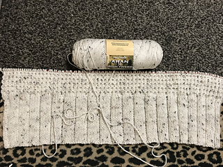 Loved my first one so much, making another, this one in natural oatmeal aran tweed. The needles I had to use were one size bigger with this yarn then what pattern called for to get gauge.