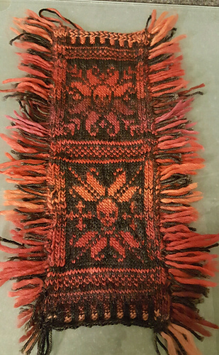 Worked pattern block. Knit 5 more sts rows in MC.