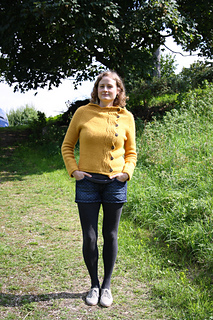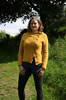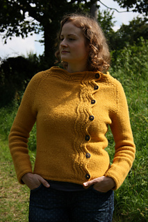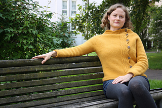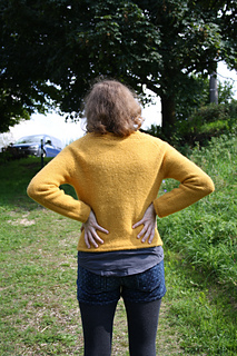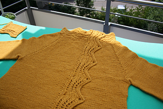 This project is a big disappointment :( After washing and the lightest blocking (collar and buttonhole band) it grew huge. Especially the raglan line is way to big and bulges in a funny way.