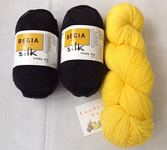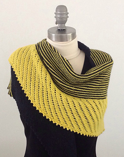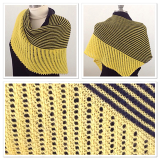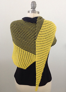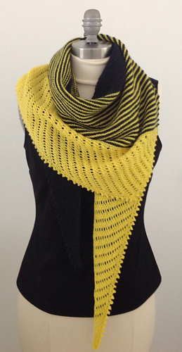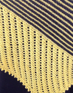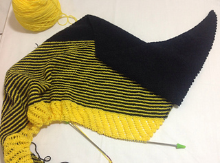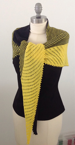 Well, the shawl’s been finished and blocked for a week but I’m only now getting around to taking pictures. I was very disappointed when I washed it - the black bled onto the bright yellow lace border. So now the bright is not nearly as bright as it should be. I might re-knit the border at some point in the future if it continues to bother me.
