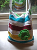 This bag was made from single stitching in every round, and changing colors every 4 rows. Super easy and alot of fun to make. :)