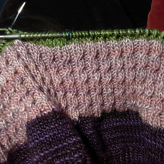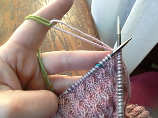 Bind off - forward pass 2 stitches off left needle over the wrap.