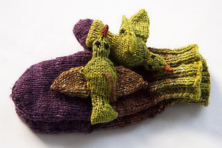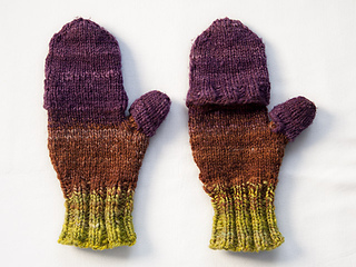 The pattern goes like this: I started with the thumb top first, then broke the yarn and started with the hand flap top. Broke yarn again, knit the hand flap along the palm and joined to the hand flap top. Knit around, broke yarn again to knit thumb. Joined the thumb flap top and thumb to hand, decreased to wrist, knit ribbed cuff.