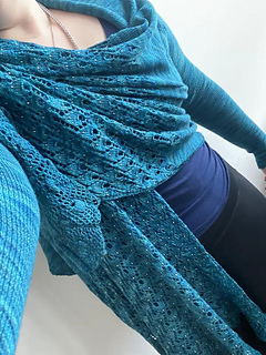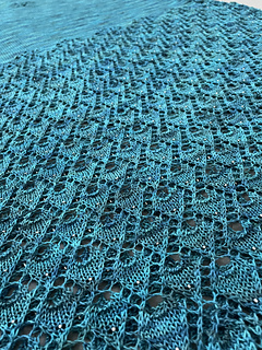 3/9/21: Joined third skein (120g) at beginning of Peacock Lace Chart A on second side. Finished Chart A (111g).