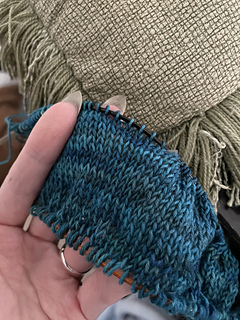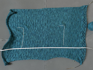 7/4/21: Bound off first sleeve. 88 rows plain after last decreases, then 5 rows ribbing before bindoff.