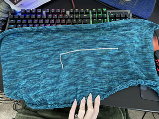 1/4/22: Actual knitting was finished and bound off several months ago, but didn’t get around to blocking until today. 35g remaining in skein.