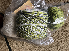 This is my latest picture yarn. If you cast on the right amount of stitches following instructions that are included with yarn purchase, the Santa’s magically appear! It can be a challenge to work with, but once you get it it is a blast!