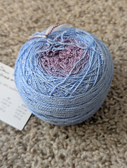 Our Stellar Lace yarn, the gradient edition. All gradients are dip-dyed using knitted sheets called “blanks”, which allows for slow and gradual transitions between different colors/shades in a gradient. And since each gradient skein is dyed by hand (mine, specifically!) in a labor-intensive process, each one is unique.
