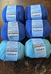 Labels were printed incorrectly. Due to the halo of the angora, Cascade recommended a gauge of 16 stitches = 4” and size 8 (5.5mm) needles. They provided stickers to place over the incorrect labels. Not all of the stashed yarn have the stickers.
