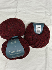 95% Wool, 5% Cashmere with approx 415 yards per 100g that knits to 6.5 sts per inch on a US 3.0 needle.