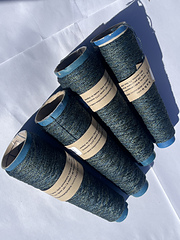 4 strands of fine merino is wrapped in super fine silk. Because it is wrapped, not plied, the colors show in a very subtle way in between each other. Has a good stretch. Perfect garment or bag yarn.