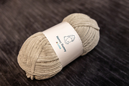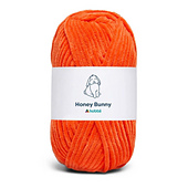 Honey Bunny is a super bulky velour yarn made out of 100% polyester. Its texture is silky and smooth to the touch with a light sheen to it.