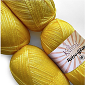 Retro-Glam is a shiny metallic yarn with a super-soft, airy feel and a glossy sheen. A blend of 57% acrylic, 43% polyester gives Retro-Glam a smooth, sleek feel and delicate drape