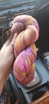 This yarn is composed of a blend of linen and silk. Works up great at a DK range for a lovely summer top. For best results, set the linen after washing by running through a dryer. It will relax and bloom wonderfully.