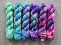 460 yards. Also sold in 20 gram mini skeins. Please adjust yardage and skein weight on individual stash entries. This is the same base yarn.
