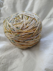 Because of the high cashmere content this base will potentially soften and blend the speckled, variegated colors.