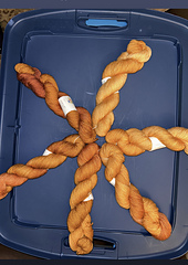 This Tussah Silk / Merino fingering weight yarn is perfect for lace, socks or other projects where you want a little extra luxury. We also like how it knits up held double; it’s perfect for dk weight sweaters!