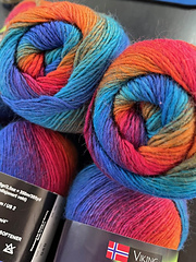 “Gratis strømpeoppskrift på innsiden av banderolen. Det går 1 nøste til et par med strømper. Garnet egner seg ekstra godt til strømper og tilbehør.”