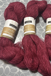 The meters to grams ratio is close to 5. 2270 yds/lb. 3-ply: 2 contrasting smooth strands +1 with halo.